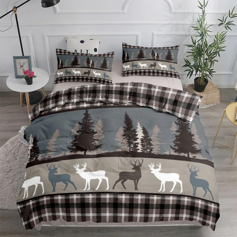 Vintage Forest Stag Plaid Duvet Cover Collection King Queen Double Full Twin Single Size With Bed Linen Collection