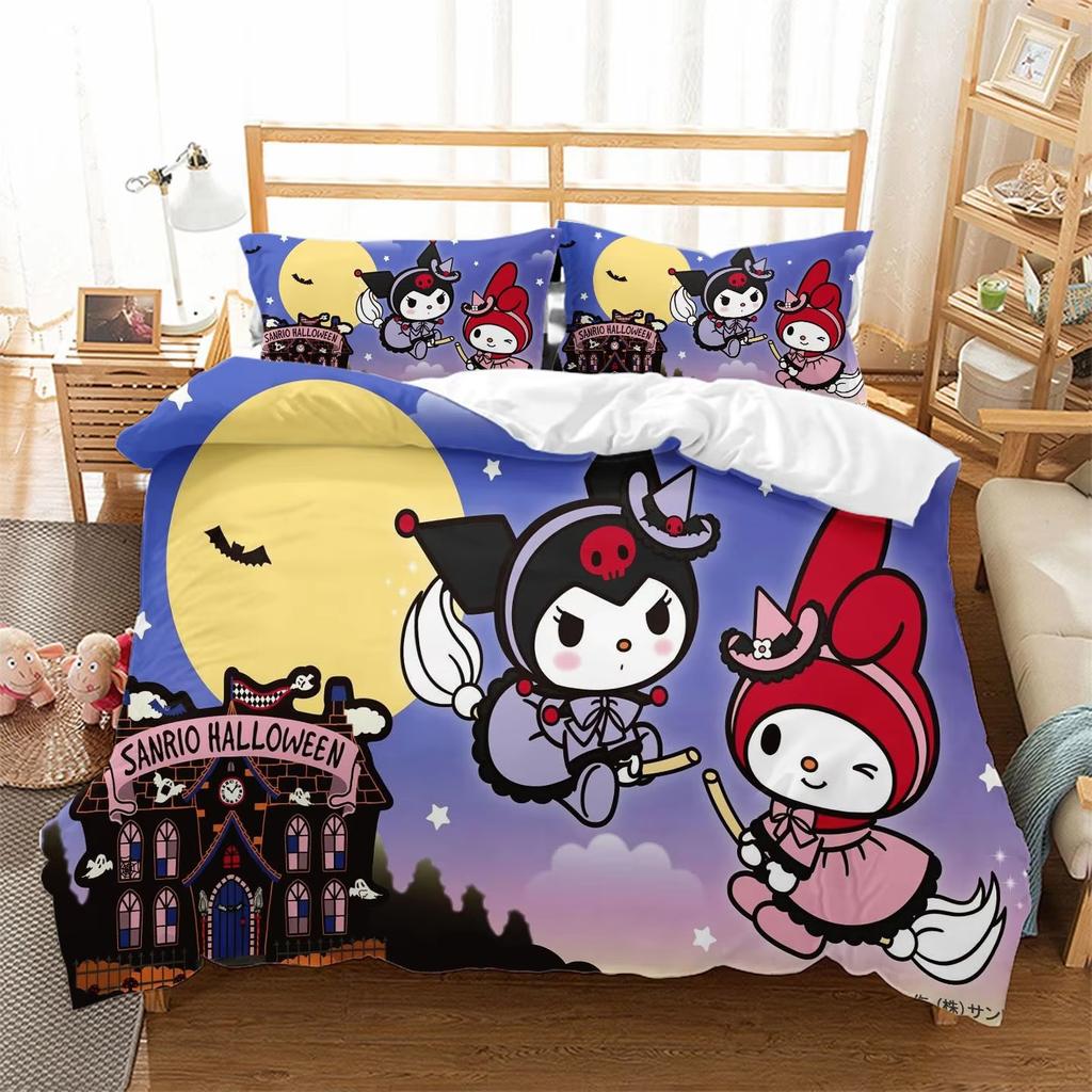 Hot Cartoon Character Kuromi Bedding Setkuromi Melody Duvet Cover Bed Set Quilt Cover PillowcaseKing Queen Size Bedding Set