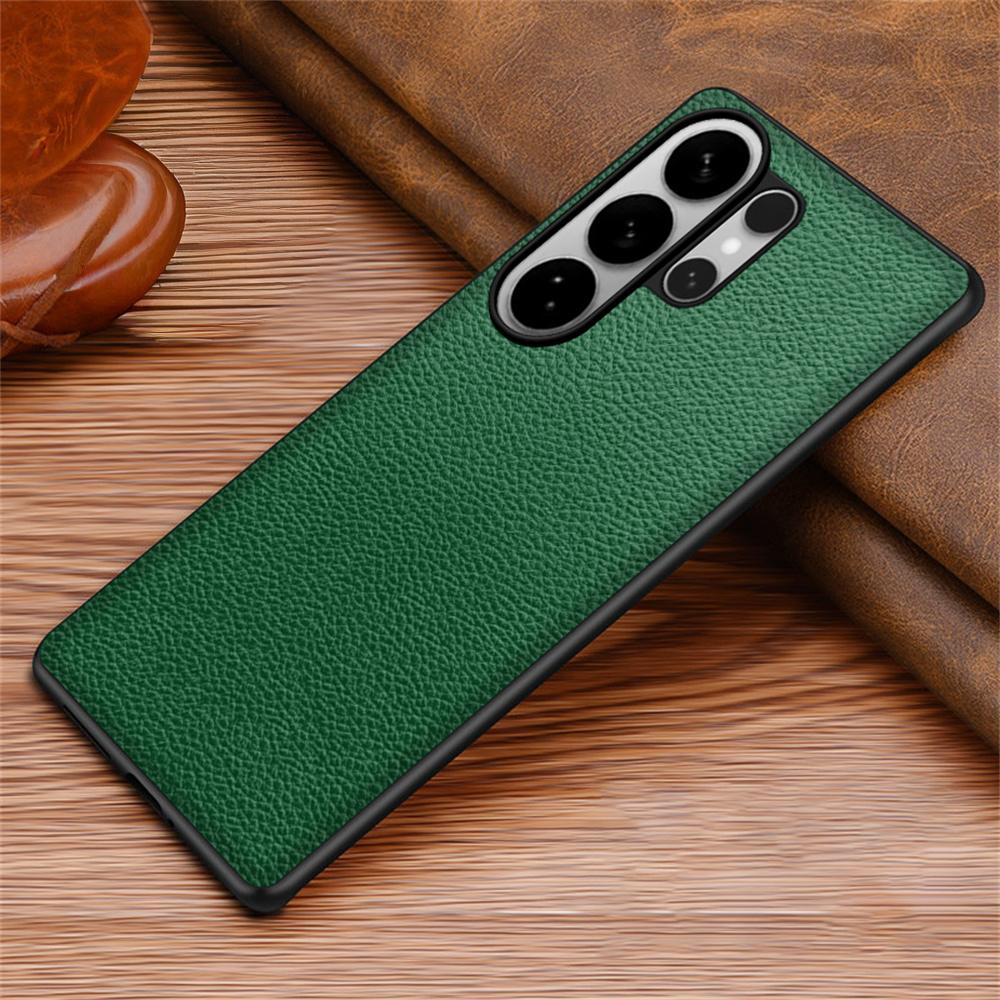 For Samsung Galaxy S24 Ultra Case Litchi Texture PU Leather Coated PC + TPU Protective Phone Back Cover