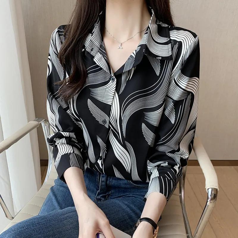 New Korean Print Design Temperament Shirt Long-sleeved Loose Retro Versatile Top Casual Shirt