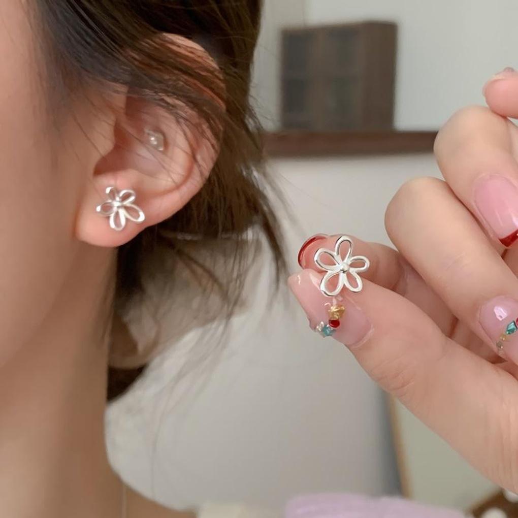 Women's Silver Summer Punching Small Flower Minimalist Earrings