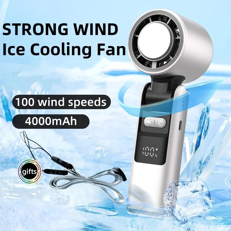 4000mAh Rechargeable Electric Handheld Fan 100 Speeds Adjustable Portable Travel Outdoor Foldable Mini Air Cooling Turbo Amagi