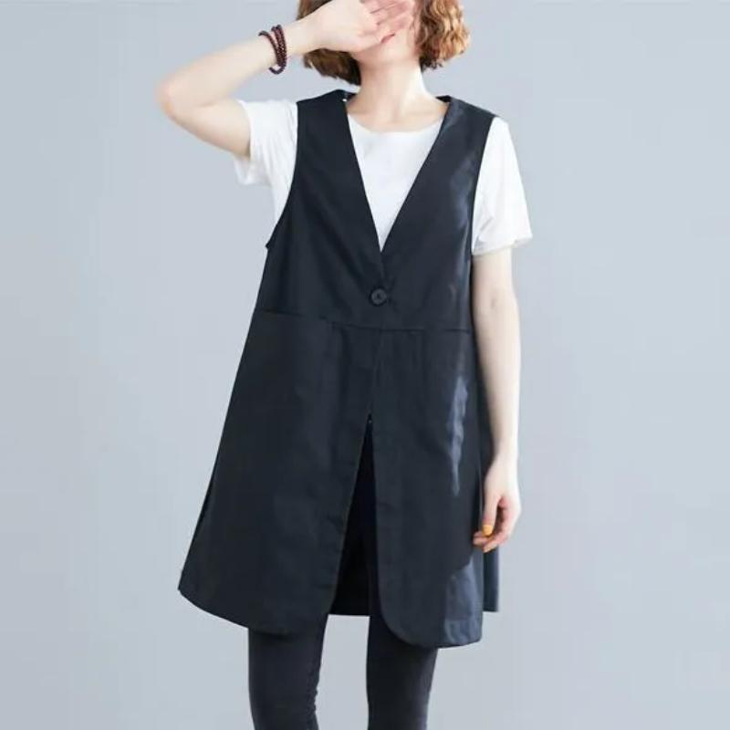 Women's New Style Stitched V-neck Button Pocket Fashion Solid Color Versatile Casual Sleeveless Vest Top