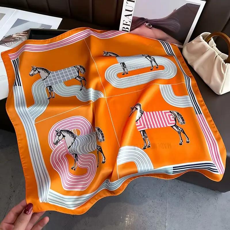 Luxury Silk Shawl Square Scarf Women Horse Satin Hijab Fashion Wraps Neckerchief Female Hair Bands Ribbon Headband Bandana 70Cm