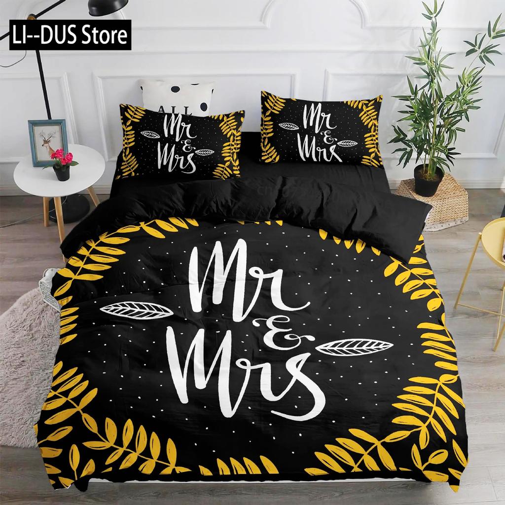 Black and White Duvet Cover Queen/King/Full Size Mr and Mrs Bedding Set 3Pieces Soft Microfiber Couple Romantic Comforter Cover