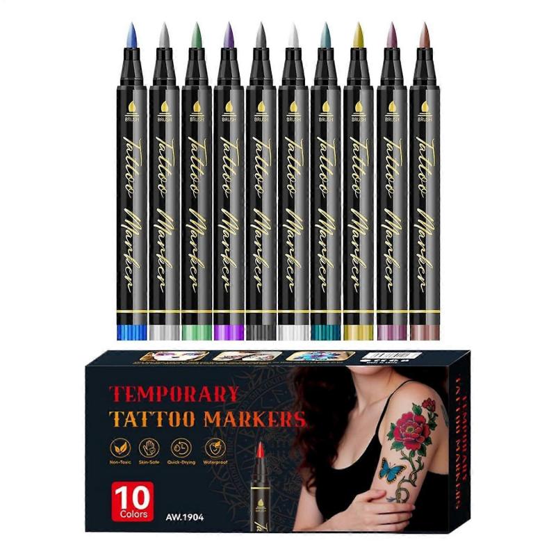 10 Color Temporary Tatto Pen,Temporary Tattoes Markers for Skin,Tatto Pen Kit,Washable Face Body Painting Kit,Adults Art Marker Pens for Party Festiva