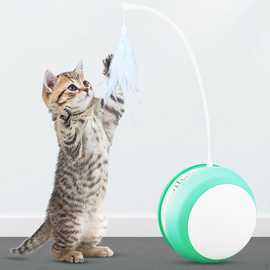 - -The primary purpose of the self rotating ball is to pet chase the ball around and have fun. With just a single press of a button, the ball will start to do a 360 degrees self rotation and attract your pet's attention. The ball will continuously move around your house