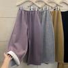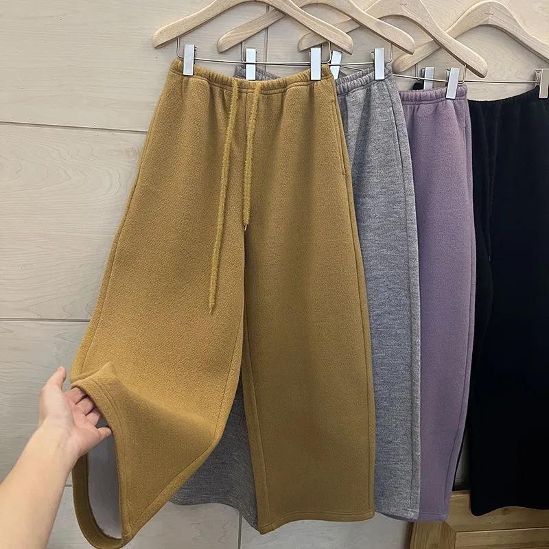 Pants for Women Plus Size Thickened Stretchy Elastic High Waist Long Trousers Solid Colour Fleece Casual Wide Leg Pants