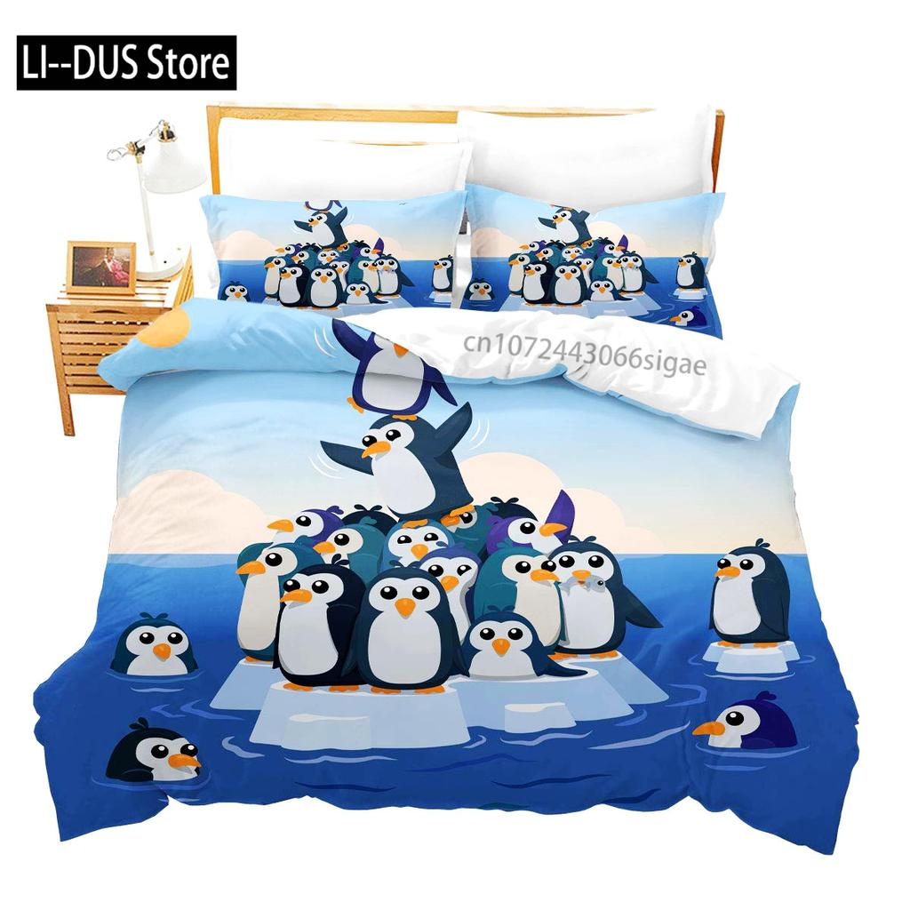 Watercolor Penguin Pattern Print Duvet Cover Set Bedding Set 3pcs for Kids Comforter Cover Soft Quilt Cover with 2 Pillow Case