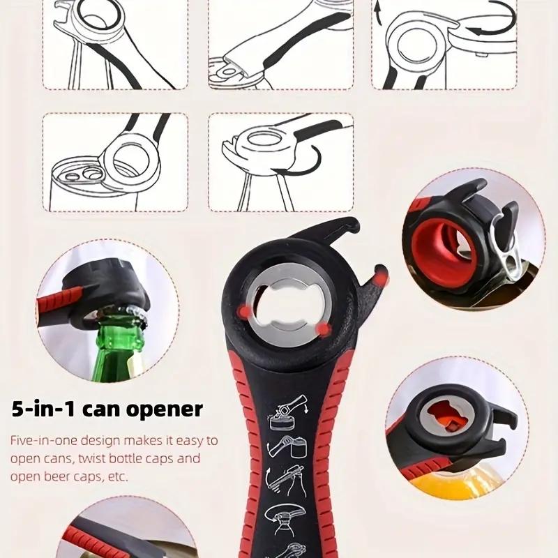 1Pc Multifunctional 5-in-1 Beer Bottle Can Opener Kitchen Anti-Slip Beer Cap Rotary Bottle Opener Kitchen Tool