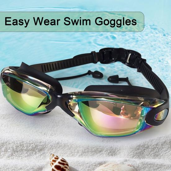 Adults Swim Goggles with Earplug Waterproof No Leakage Anti-Fog UV Protection Clear Lens Men Women Silicone Goggles Scuba Diving Snorkeling Equipment