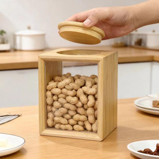 Perfect for storing and displaying snacks, dried fruits, nuts, legumes, and cereals. Crafted from premium high-quality bamboo and acrylic, this durable jar adds a touch of elegance to any kitchen decor. Featuring a dust-proof lid with strong sealing performance, it effectively prevents dust and keeps contents fresh.