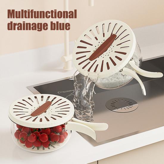 This versatile drain basket is perfect for washing, draining, and storing a variety of fruits and vegetables such as grapes, berries, tomatoes, and leafy greens. Its innovative two-in-one design combines fruit cleaning and storage functions, featuring an integrated strainer lid for efficient draining and preservation.