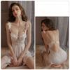 Plus Size Women’s Sexy Push-Up Underwire Sleep Dress Lace Backless Camisole Padded Deep V Nightdress