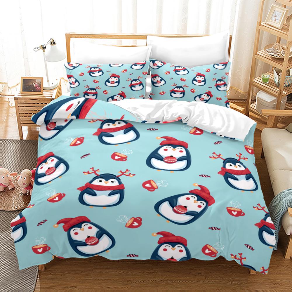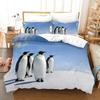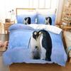 Antarctic Penguins Duvet Cover Set For Kid Girl Boy Cute Animals Polyester Comforter Cover Black White Print Bedspread King Size