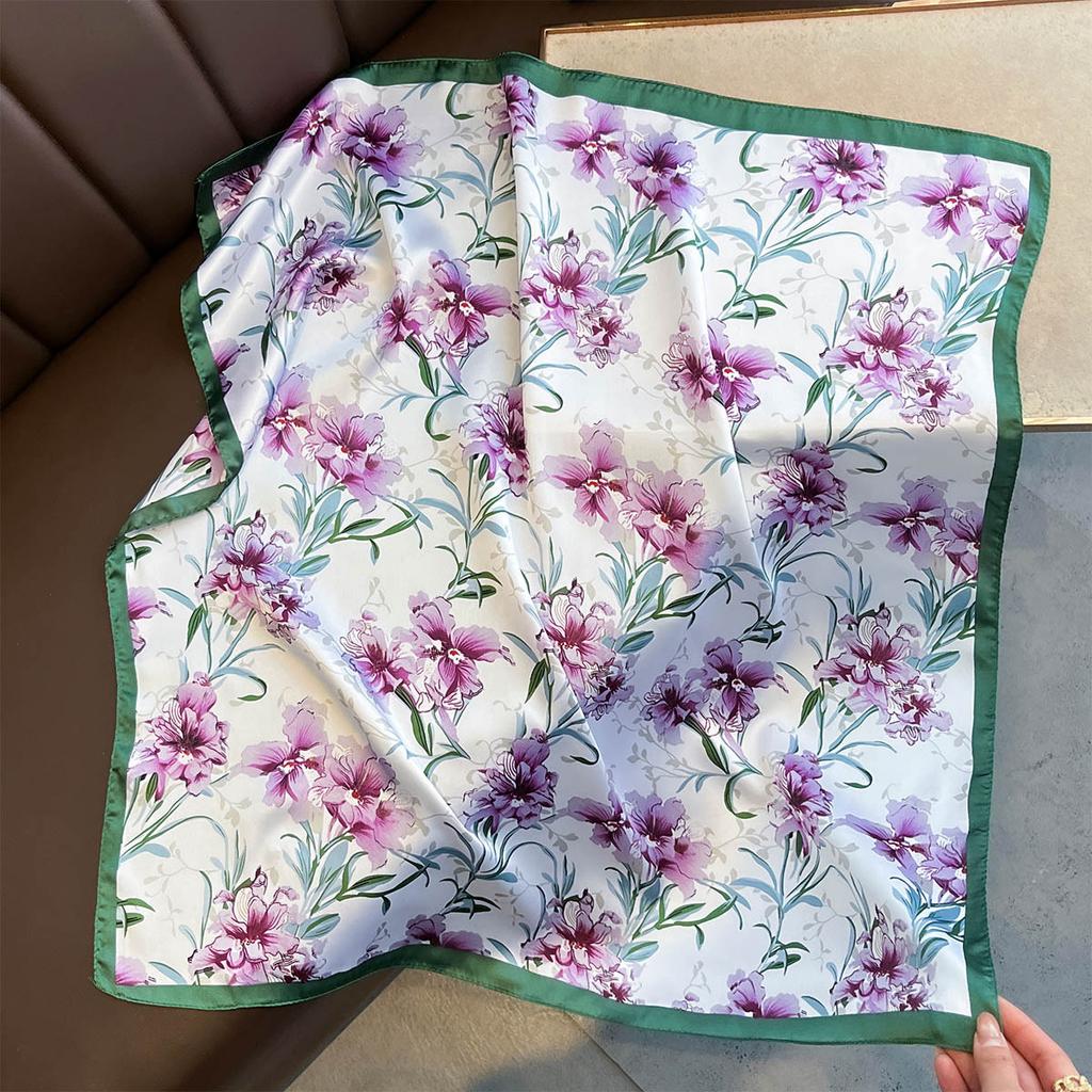Imitation Silk Scarf For Women SpringSummer Chain Print Square Scarf Decoration Bandanna Neckerchief Luxury Headband Hijab