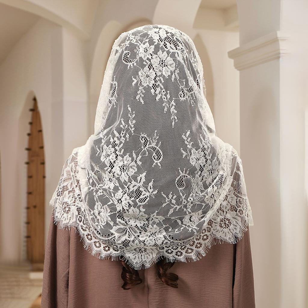 Embroidery Triangular Scarf Hollow Out Lace Shawl Hijab Women Solid Floral Handkerchief Big Size Fashion Elegant Scarf Bandana