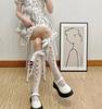 Women Sexy Lace Mesh White Black Fishnet Knee High Long Socks Lingerie Cute Gothic Style Ruffles Hollow Bow JK Lolita Stockings