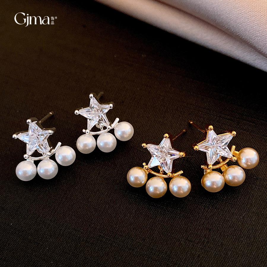 Korean Temperament Zircon Star Pearl Stud Earrings Design Sense Versatile Earrings Earrings