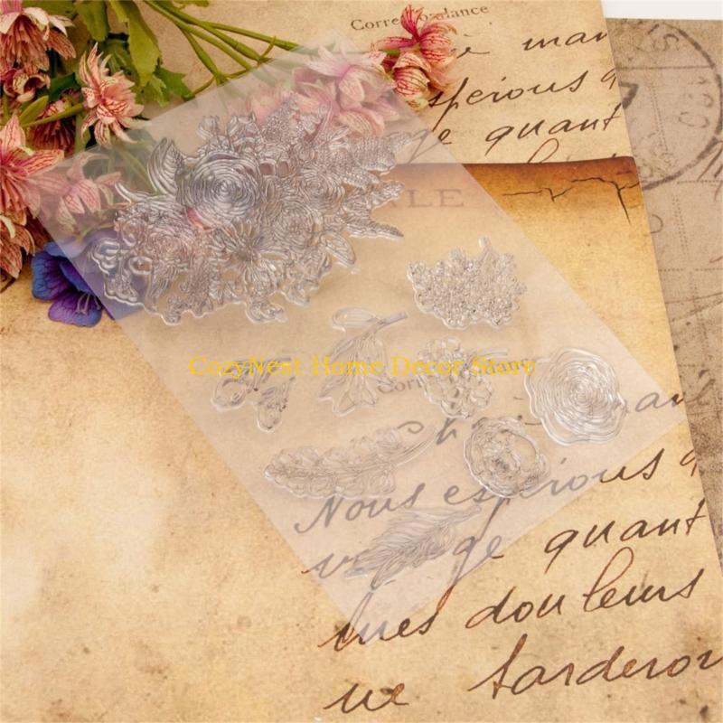 92MF Silicone Seal Stamp Flower Clear Stamps Embossing Photo Journal Album Decoration