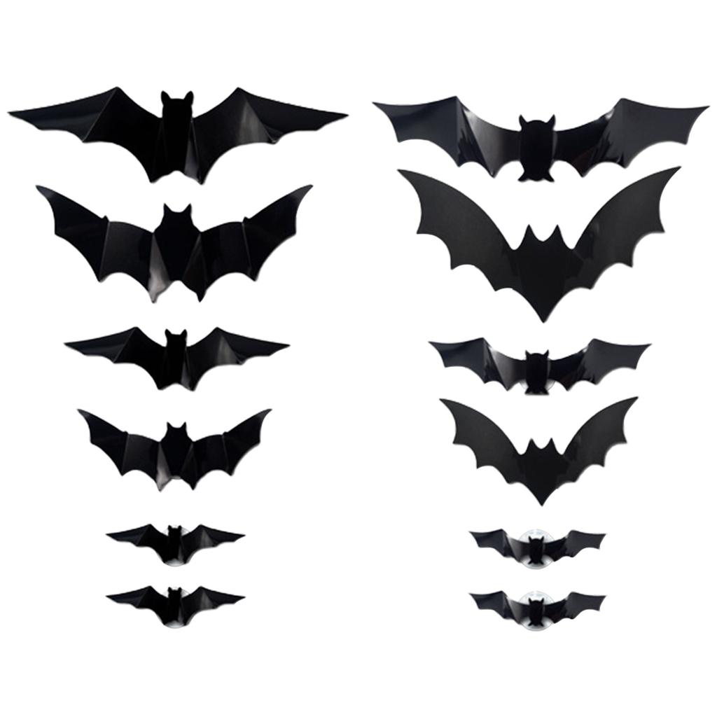 12/24/36/48/60Pcs New Halloween 3D Lighted Bats Wall Stickers Halloween Party DIY Decorative Horror Bats Removable Stickers