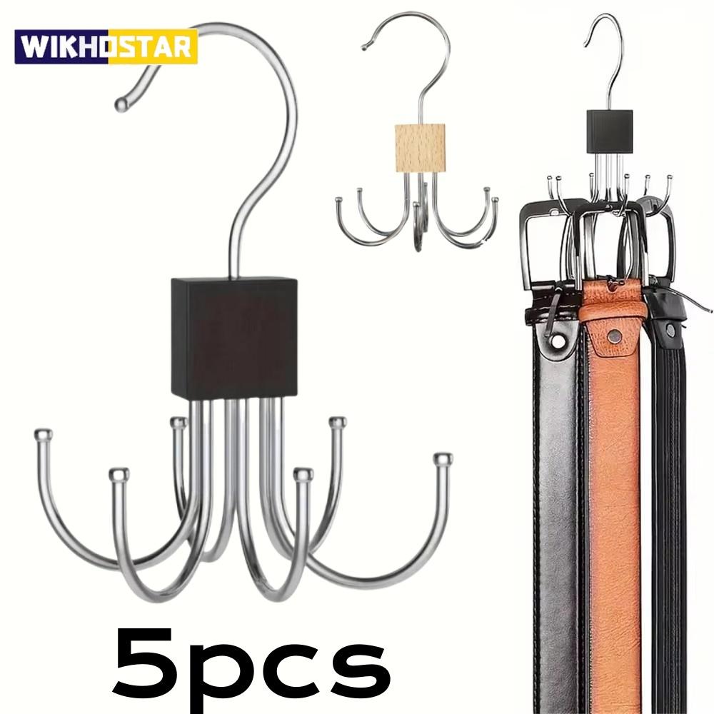 5pcs 360° Rotating Storage Hanger Hook Multi-Claw Bag Metal Belts Rack Wooden Organizer For Bras Ties Household Closet Acces