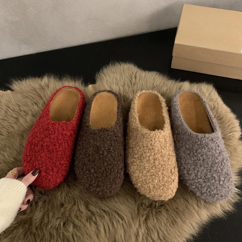 Platform Slippers Women's Autumn and Winter Retro Fluffy Bag Head Half Slippers Women Wear Lazy Muller Shoes