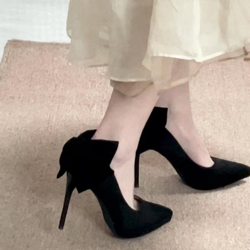 Bow Waterproof Table Stiletto High Heels Women's Black Autumn and Winter Skirt Not Tired Feet Single Shoes
