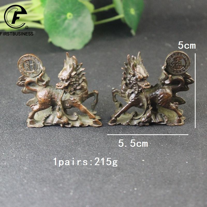 1 Pair Antique Copper Beast Kirin Statue Desktop Ornaments Retro Animal Figurines Feng Shui Home Decorations Crafts Accessories