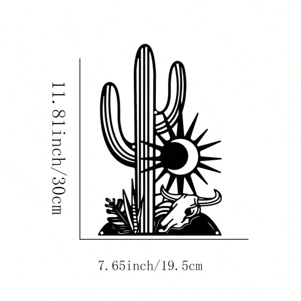 Metal Cactus Wall Art Sun Bull Design Elegant Black Iron Decor Living Room Balcony Gift