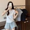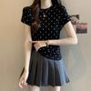 New Arrival Summer Clothing Style Short-sleeved Slim Sweet T-shirt for Girls with Straight Shoulders Slim-fit Slim Design Polka Dot Top