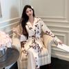 Ice Silk Pajamas Women's Warm Season and Autumn Cardigan Lace Up Set Ice Silk Sweet Print Pajamas Set Pajamas