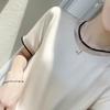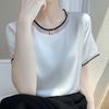 Acetate Satin Short-sleeved T-shirt for For Women Mesh Round Neck Top Latest Summer Loose Contrasting Color Acetate Half-sleeved