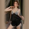 Sexy Pajamas Women's Deep V Satin Pajamas Set with Padded Lace Informal Pajamas Women Home Wear
