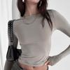 European and American Women Clothing New Solid-color Round Neck Slim-fitting Bottoming Shirt Long-sleeved T-shirt Top