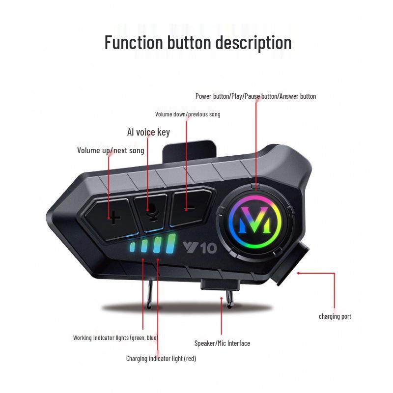 Y10 Bluetooth Helmet Headset: Waterproof, Noise-Cancelling, Smart Connection for 2 Phones