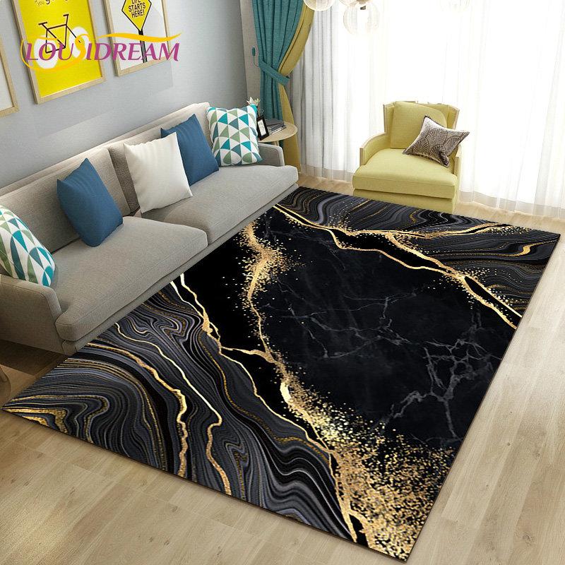 Nordic Black Gold Blue Marble Area Rug Large,Carpet Rug for Living Room Bedroom Sofa Doormat Decoration,kids Non-slip Floor Mat