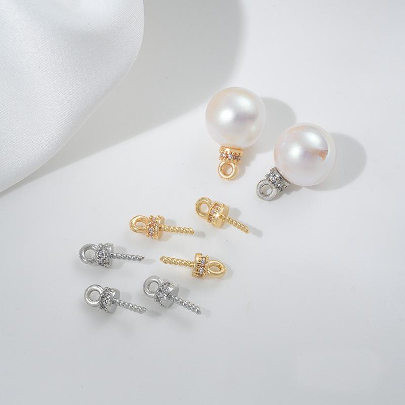 14K Gold-Filled Zircon Round Eye Pin Pearl Necklace Pendant Cap for DIY Jewelry