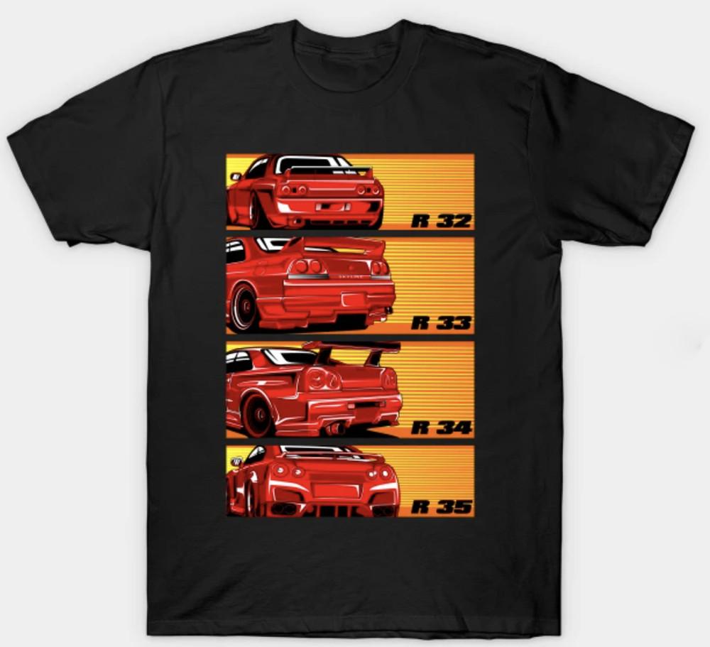 GTR R32 R33 R34 R35 Japanese Car Short Sleeve S Mens Unisex S-3XL Black Unisex T-Shirt