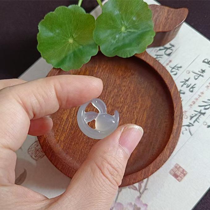 Natural White Chalcedony Moon Rabbit 3D Pendant - Ice Style