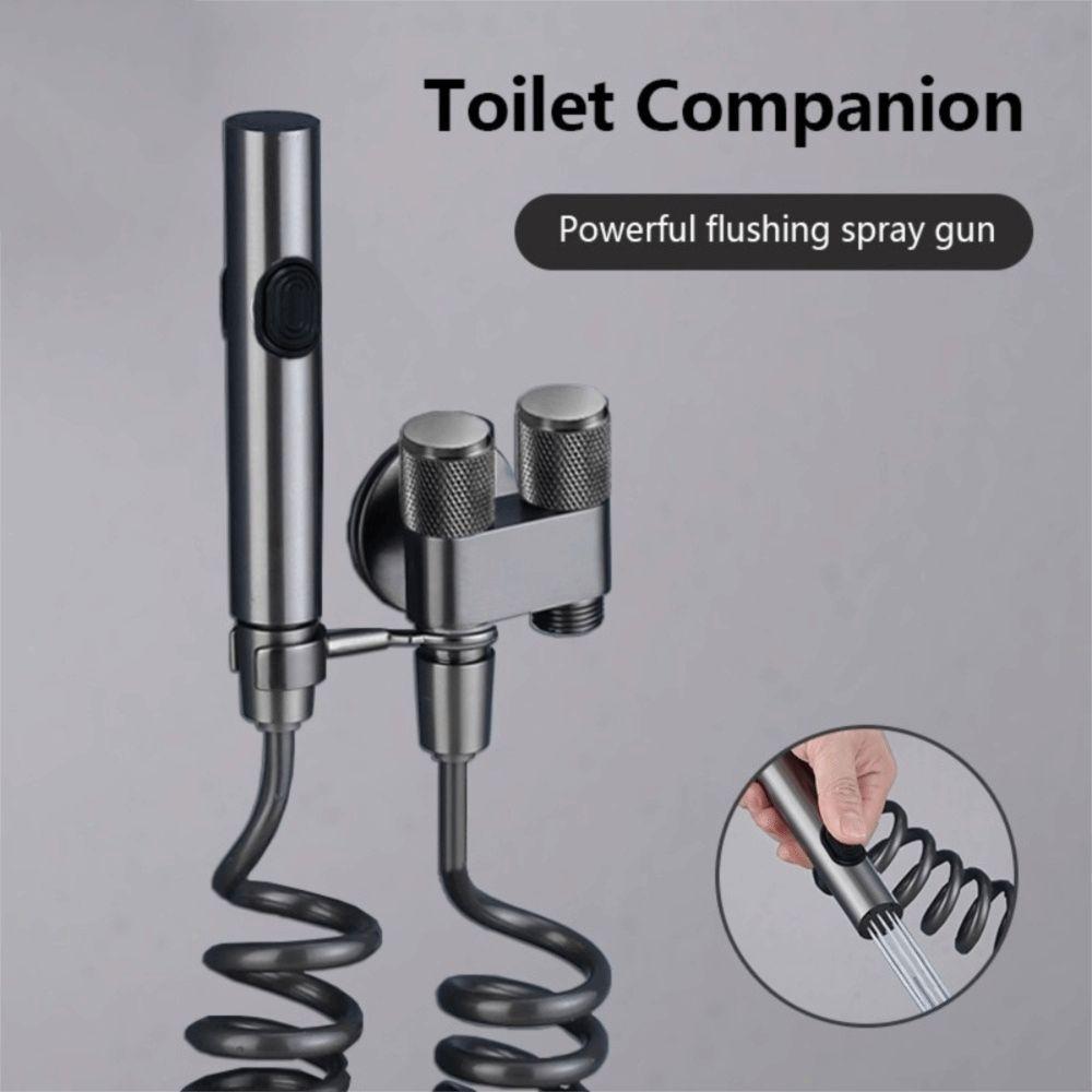 Stainless Steel Material Handheld Bidet Sprayer Double Outlet Hand-held Design Toilet Cleaning Bidet Sprayer Pressurized Spray
