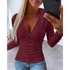 Women's Fashion Casual Solid Color Print Long Sleeve V Neck Blouses & Shirts