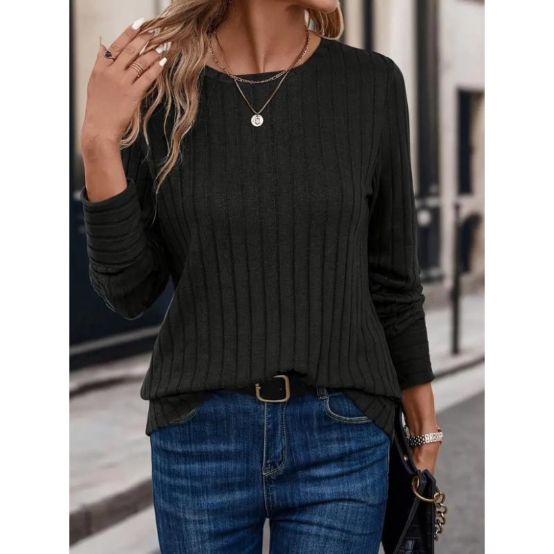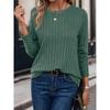 Solid Color Round Neck Ribbed T-shirt Spring and Autumn Casual Long-sleeved Top Women's
