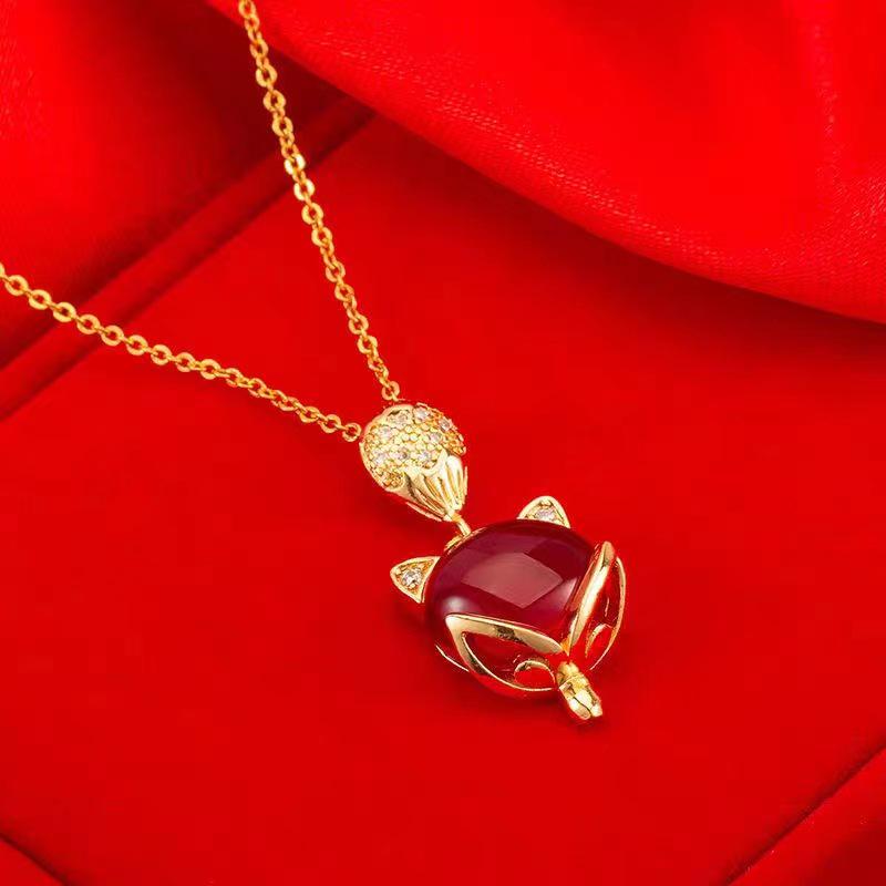 Vietnam Sand Gold Plated Red Fox Necklace with Simulated Gold Pendant - Women's Cute Fox Jewelry