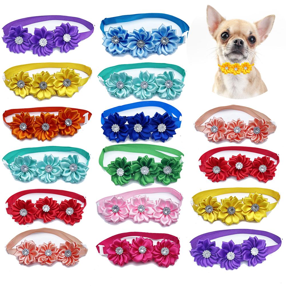 50/100pcs Cute Flower Dog Bow Ties Petals Mix Colors Dog Grooming Accessories Pet Flower Bows With Diamonds Cat Bowties Collar