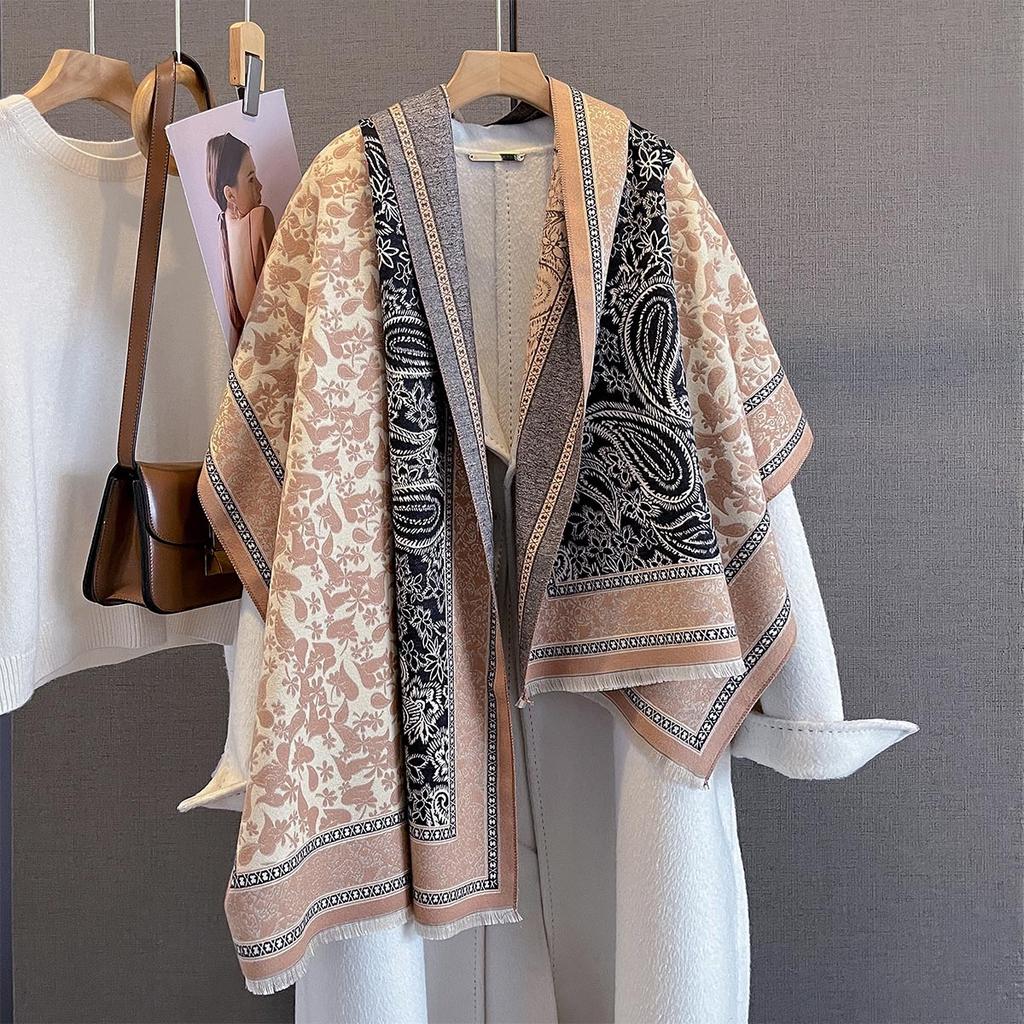Retro Paisley Print Cashmere Feel Pashmina Women Winter Outdoor Keep Warm Large Shawls Wraps Tassels Lady Bufanda Blanket Poncho