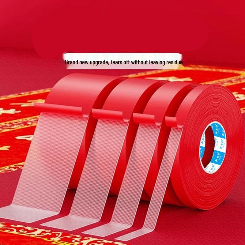 No-Trace Red Double-Sided Tape - High Viscosity, Strong Adhesive, Cloth-Based, Ideal for Spring Couplets.