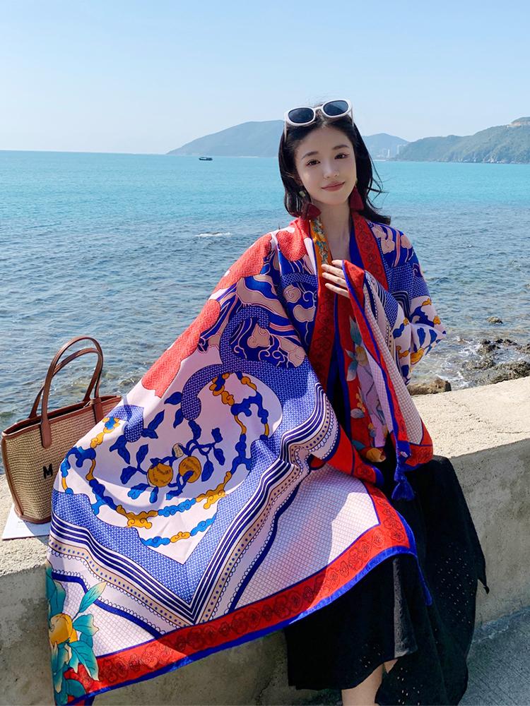 Summer Fashion Elegant Women Silk Scarf Beach Wrap Shawl Print Sunscreen Bandana Hijab Mujer Bohemian Musulman Long Scarve Pareo