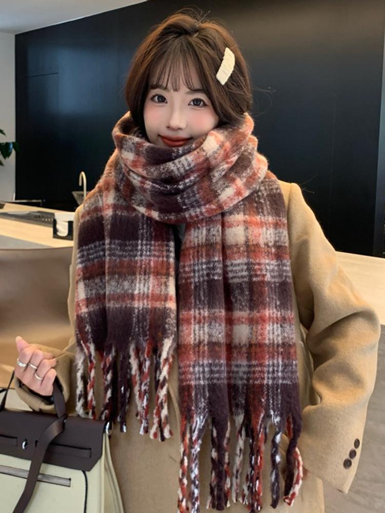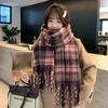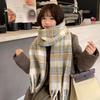 Women Winter Knit Scarf Headscarf Lady Preppy Retro Plaid Print Tassel Warm Scarve Foulard Wrap Shawl Fashion Casual New Korean