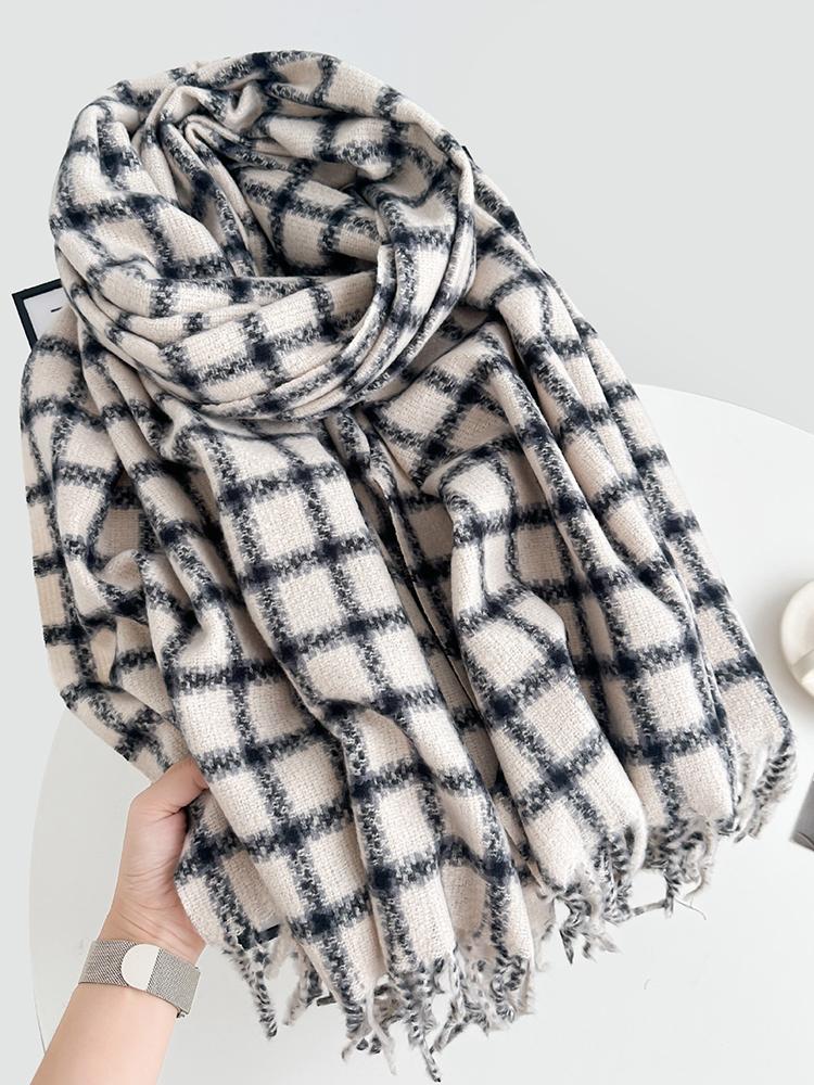 Autumn Winter Women Imitation Cashmere Knitted Scarf Lady Men Casual Plaid Tassel Soft Scarve Wrap Shawl Femme Male Unisex New
